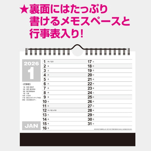 ●裏面はたっぷり書けるメモスペースと行事表になっています。