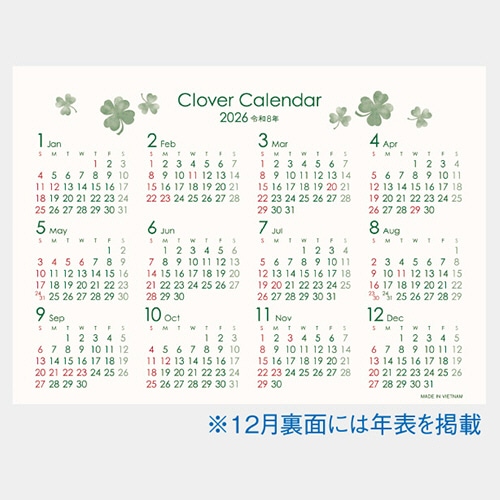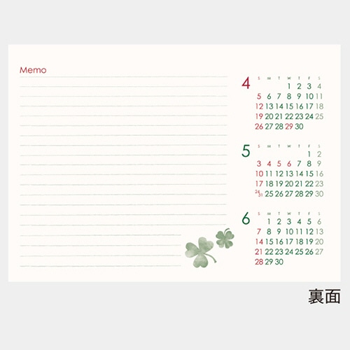 ●毎月、四つ葉のクローバーがデザインされ、爽やかな雰囲気を与えてくれる卓上カレンダーです。