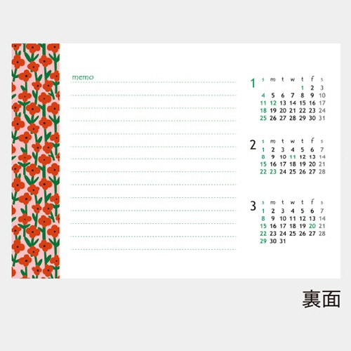 ●メモ欄も広く、裏面はメモ帳と翌月、翌々月のカレンダーが載り、12月の裏面は年間カレンダーになっています。