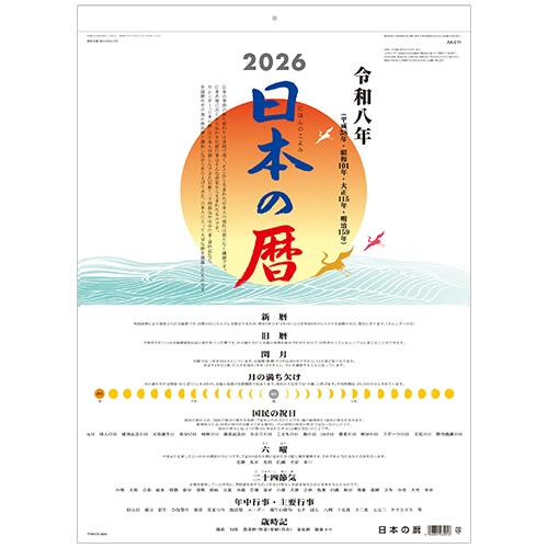 九十九商会 壁掛けカレンダー 日本の暦 2026年版 AA-011-2026 1冊