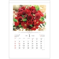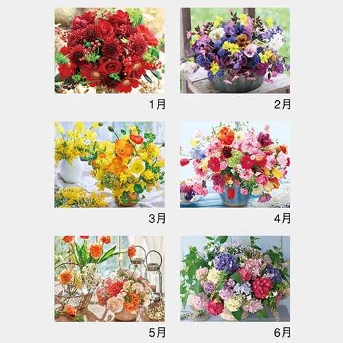 ●華やかな花のアレンジの写真に、花による「癒し」効果の情報を記載した壁掛けカレンダーです。インテリアとしてお使いください。