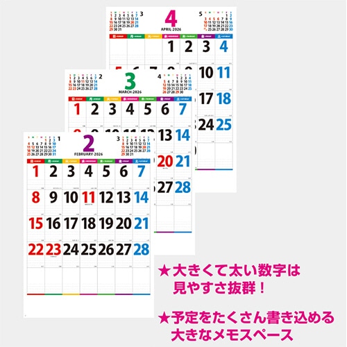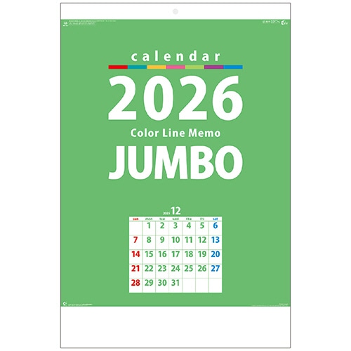 新日本カレンダー 壁掛けカレンダー カラーラインメモ ジャンボ 2026年版 NK-147-2026 1冊