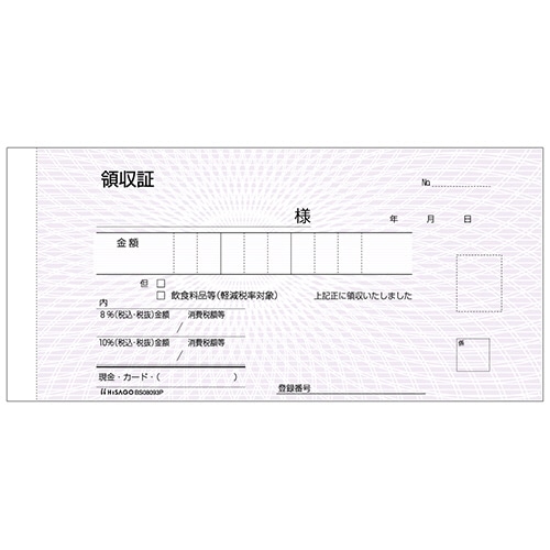ヒサゴ 領収証(入金票付) 小切手サイズ 3枚複写 50組 BS08093P 1冊