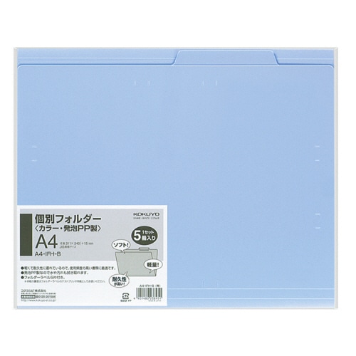 コクヨ 個別フォルダー(カラー・PP製) A4 青 A4-IFH-B 1パック(5冊)