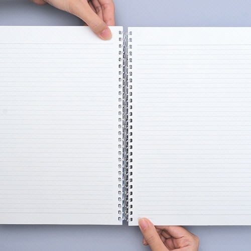 ●360°折り返して使えます。専用リーフの採用で、スリムな綴じ具でもリーフがスムーズに回転!