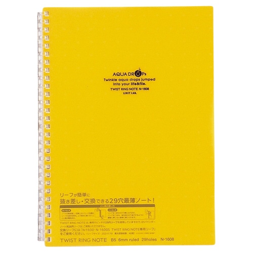 リヒトラブ AQUA DROPs ツイストノート セミB5 29穴 B罫 リーフ30枚付属 黄 N-1608-5 1冊