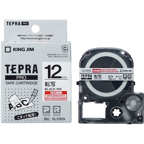 | 商品仕様 | ●テープ種類/転写テープ ●テープ幅/12mm ●テープ長さ/8m ●文字色/黒 ●その他仕様/●対応機種:SR950・SR750・SR250・SR5900P ●備考/※転写テープはトレス紙、上質紙などの筆記用紙への転写に適しています。アート紙/コート紙などのツヤのある印刷用紙では転写できない、転写した文字がはがれる等の場合があります。 ●シリーズ名/TEPRA |