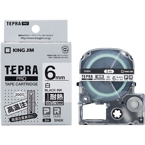 キングジム テプラ PRO テープカートリッジ 耐熱ラベル 6mm 白/黒文字 SN6K 1個