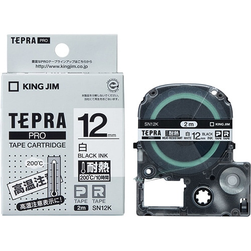 キングジム テプラ PRO テープカートリッジ 耐熱ラベル 12mm 白/黒文字 SN12K 1個