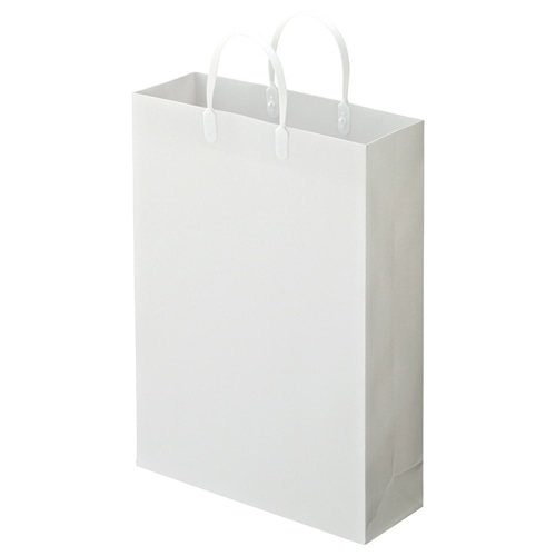 商品仕様 | ●サイズ/大 ●タイプ/手提紙袋 ●色/白 ●寸法/幅320×マチ幅110×高さ440mm ●取っ手/PPハッピータック ●表面加工/光沢PPラミネートフィルム加工 ●坪量/157g/m2 ●材質/コート紙 ●その他仕様/●口、底部ボール紙入 ●表面:光沢PPラミネートフィルム加工 |