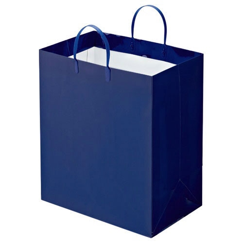商品仕様 | ●サイズ/マチ広 ●タイプ/手提紙袋 ●色/紺 ●寸法/幅350×マチ幅220×高さ400mm ●取っ手/PPハッピータック ●表面加工/光沢PPラミネートフィルム加工 ●坪量/157g/m2 ●材質/コート紙 ●その他仕様/●口、底部ボール紙入 ●表面:光沢PPラミネートフィルム加工 |