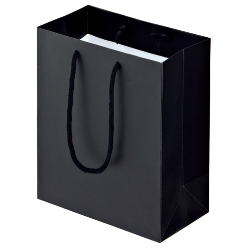 ●マット(つや消し)PP貼りの高級感のある、Sサイズ・ブラックの手提袋。