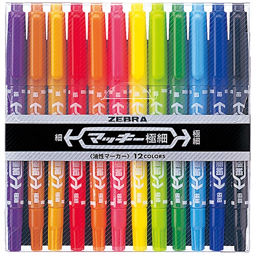 ゼブラ 油性マーカー マッキー極細 丸芯細字+極細 12色(各色1本) MCF-12C 1パック