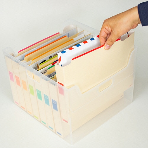 A4サイズの用紙や雑誌の切り抜き、パンフレットなどがたっぷり分類整理できるワイドタイプ。