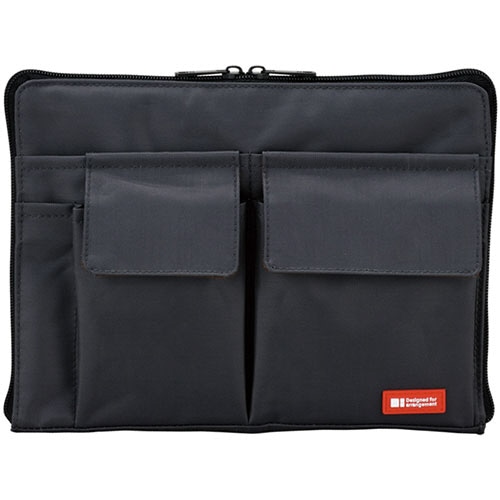 商品仕様 | ●色/黒 ●本体外寸/W250×D17×H180mm ●材質/本体:ポリエステル、緩衝材:ポリウレタン ●その他仕様/●サイズ規格:A5 ●ポケット数:メインポケット×1(ダブルファスナー仕様)、マチなしポケット×2、マチ付ポケット×2、ペンポケット×1 ●重量:125g |