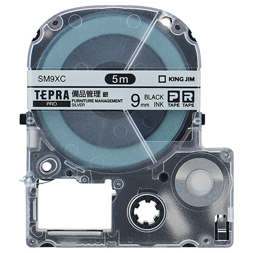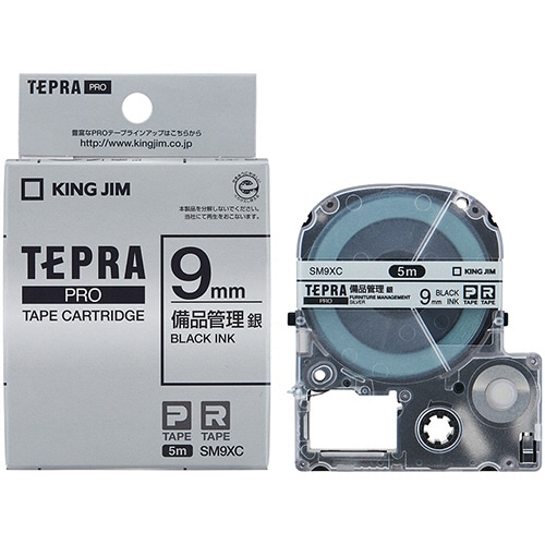 キングジム テプラ PRO テープカートリッジ 備品管理ラベル 9mm 銀/黒文字 SM9XC 1個
