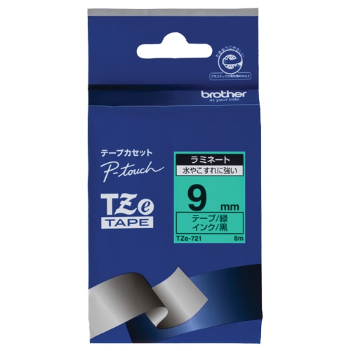 ブラザー ピータッチ TZeテープ ラミネートテープ 9mm 緑/黒文字 TZE-721 1個