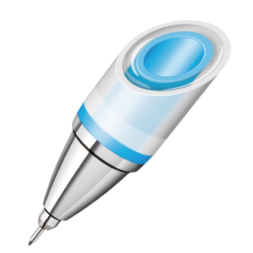 ●マークの動きで芯の回転がわかる。芯を紙に押しつけて離すたびに芯が9度回って、芯先が均一に摩耗します。