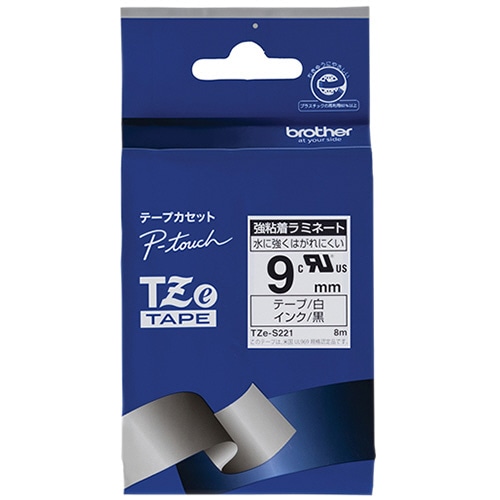 ブラザー ピータッチ TZeテープ 強粘着ラミネートテープ 9mm 白/黒文字 TZE-S221 1個