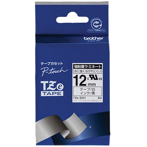 ブラザー ピータッチ TZeテープ 強粘着ラミネートテープ 12mm 白/黒文字 TZE-S231 1個