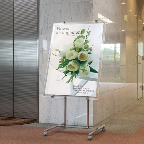 | 商品仕様 | ●ボード適合サイズ/幅592~1160mm×高さ400~1100mm ●ボード適合厚/25mm以内 ●本体最大サイズ/幅約555×奥行約600×高さ約2000mm ●色/シルバー ●重量/5000g ●耐荷重/約7kg ●材質/本体:スチール(ニッケルクロームメッキ)、キャスター:ポリプロピレン ●備考/※お客様組み立て商品です。 |