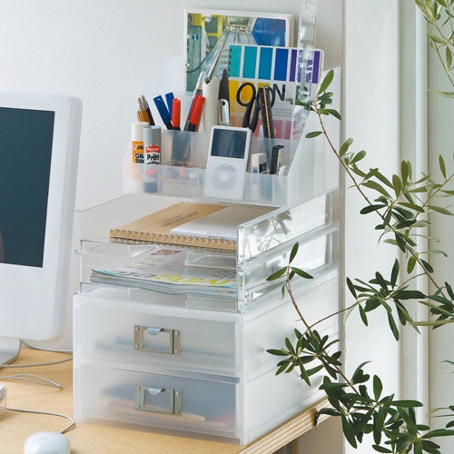 | 商品仕様 | ●サイズ/A4タテ ●色/ホワイト ●外寸/W260×D350×H98mm ●内寸/W230×D327×H65mm ●重量/836g ●材質/本体・引出し:ポリプロピレン、取っ手・止め具:スチール(ユニクロメッキ) |