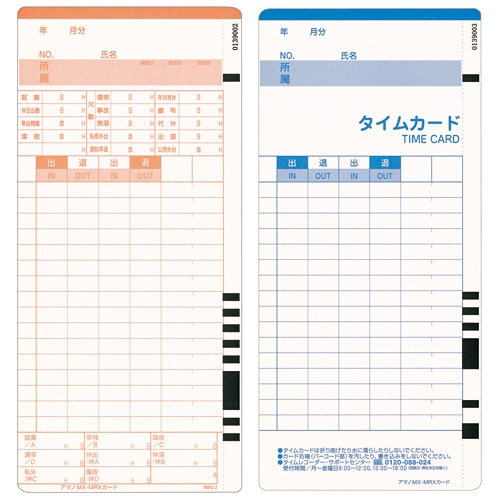 MXシリーズ、MRXシリーズ用タイムカード。