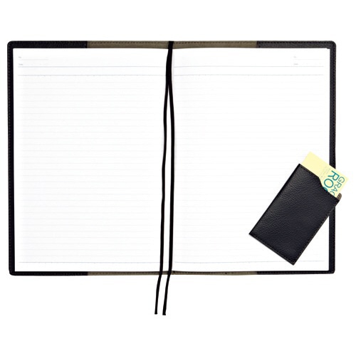 | 商品仕様 | ●サイズ/セミB5 ●寸法/W268×D187×Hmm ●色/ブラック×グリズリー ●材質/外側:PVC、内側:SEF紙 ●その他仕様/●付属品:セミB5ノート1冊(タテ252×ヨコ179mm、A罫7mm、30行、30枚)、カードケース |