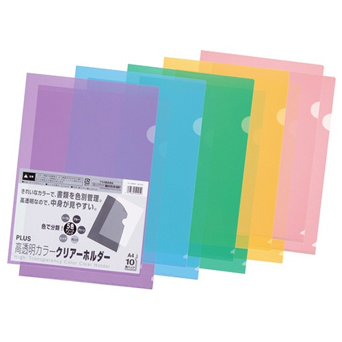 プラス 高透明カラークリアーホルダー A4 ミックス FL-184HO 1パック(10枚)
