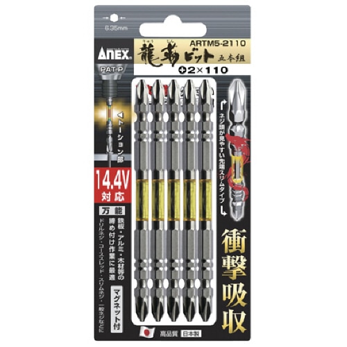 アネックスツール 龍靭ビット 両頭 +2×110 ARTM5-2110 1パック(5本)