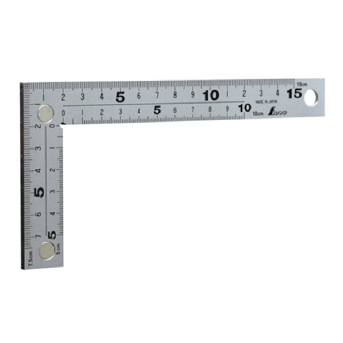 長さの測定、直角の確認やケガキ作業に使用する曲尺。