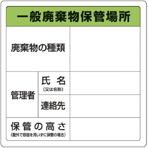 TRUSCO 廃棄物保管場所標識 「一般廃棄物保管場所」 T-82290A 1枚