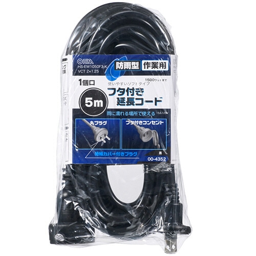 | 商品仕様 | ●コンセント仕様/2P(フタ付き) ●コンセント数/1個口 ●プラグ形状/2極 ●定格容量/15A-125V 1500W ●ケーブル長さ/5m ●その他仕様/●トラッキング火災対策:対応 |