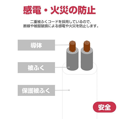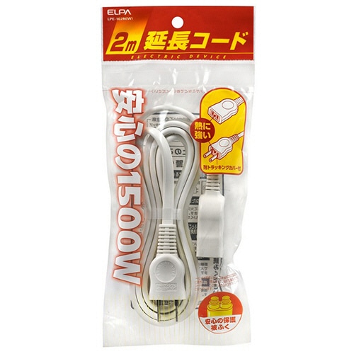 | 商品仕様 | ●色/ホワイト ●コンセント仕様/2P ●コンセント数/1個口 ●定格容量/15A・125V・1500W ●ケーブル長さ/2m ●質量/190g ●その他仕様/●耐トラッキングカバー ●二重被ふく |