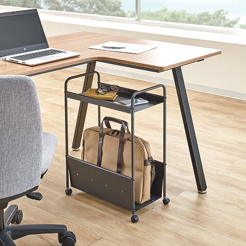 トレーと棚板を3通りに組み替え可能なパーソナルワゴン。