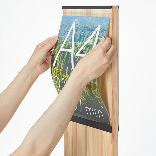 | 商品仕様 | ●寸法/幅225×奥行240×高1170mm ●重量/4.1kg ●色/サテンブラック ●材質/本体(木材部):集成材(杉、間伐材)、ベース・フレーム:スチール(粉体塗装)、掲示用フォルダー:PVC ●必要工具/プラスドライバー ●製造国/日本 ●その他仕様/●用紙有効サイズ:幅215×高305mm ●備考/※間伐材を使用しているので、木目の柄や色にばらつきが生じる可能性があります。 |