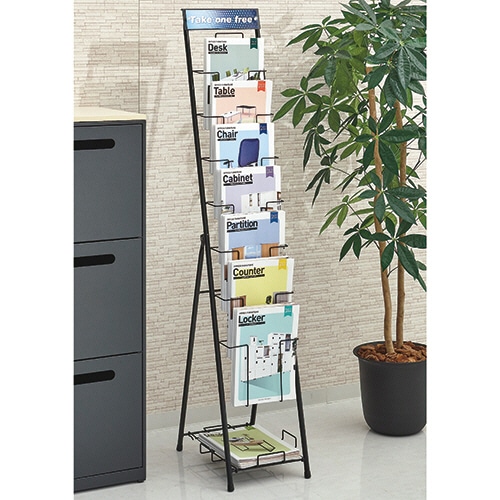 ●A4サイズ7段の1列パンフレットスタンド、色はマットブラックです。