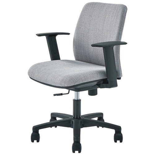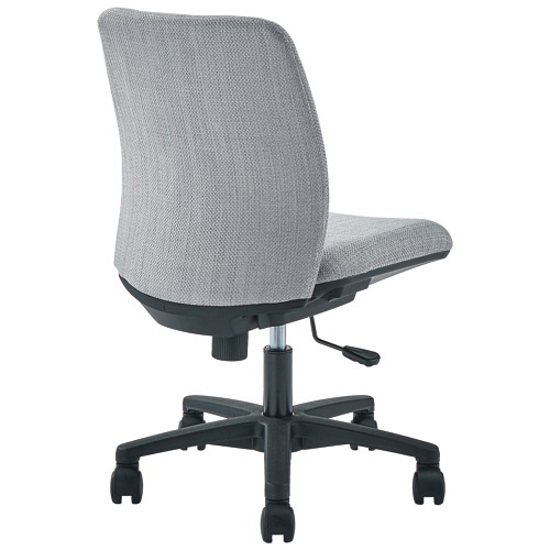 ●脚幅560mmで幅のせまい机にも収まりやすいコンパクトチェア。色はライトグレーです。