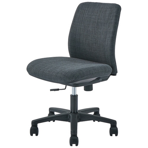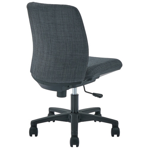 ●脚幅560mmで幅のせまい机にも収まりやすいコンパクトチェア。色はダークグレーです。