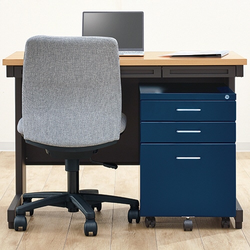 ●小ぶりな幅1000mmのデスク内にも幅400mmのワゴンとチェアがピッタリ収まります。