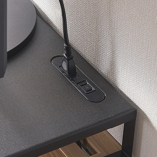 ●天板右上にはスライドカバー付2口コンセントを配置。