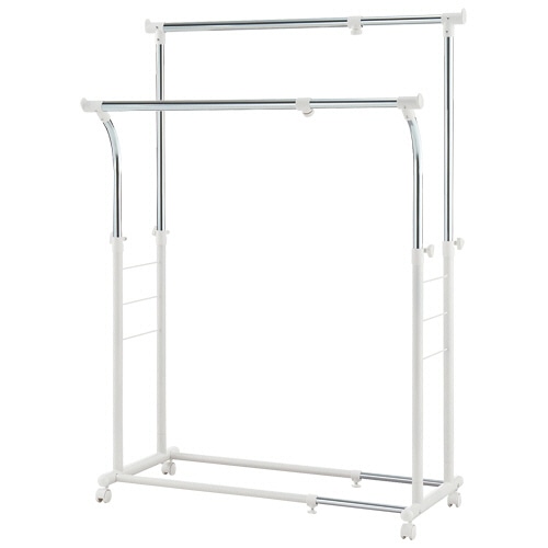 商品仕様 | ●寸法/W805~1220×D520×H980~1560mm ●重量/5.5kg ●色/オフホワイト ●耐荷重/約30kg(全体) ●材質/本体:スチール(エポキシ樹脂塗装、クロームメッキ)、PP ●脚部仕様(キャスター/アジャスター)/キャスター(ストッパーなし) ●必要工具/付属工具とプラスドライバー ●製造国/台湾 ●付属品/スパナ ●その他仕様/●タイプ:ダブル |