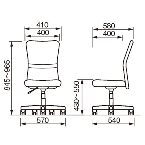 商品仕様 | ●背張地タイプ/メッシュ ●寸法/W570×D580×H845~965mm ●重量/6.8kg ●色/ブラック ●座面高さ/430~550mm ●座幅/410mm ●脚幅/570mm ●材質/本体:スチール、張地:布(ポリエステル)、クッション:ウレタンフォーム、脚・キャスター:ナイロン ●クッション材質/ウレタンフォーム ●機能/座ガス上下調節 ●肘掛け/なし ●脚部仕様(キャスター/アジャスター)/キャスター ●必要工具/工具付属 ●製造国/中国 ●付属品/六角レンチ |