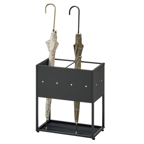 ●前面パネルがアクセントの約24本用、サテンブラックの傘立てです。