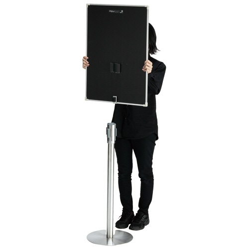 ベルトパーティションに取り付けられるアルミフレームのポスターパネル。