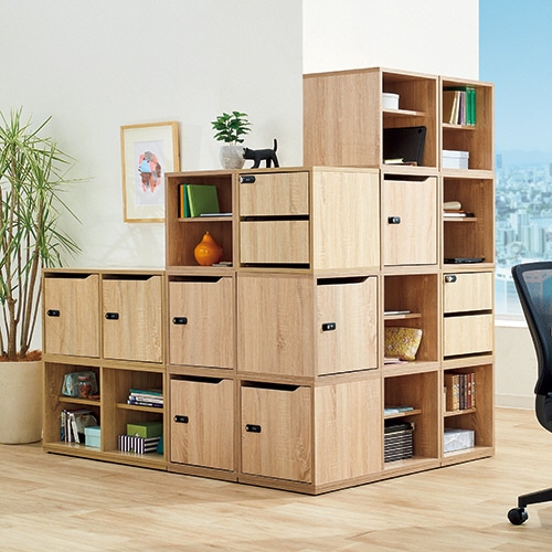 アスカ 組立式木製収納ボックス 本体(引き出し付) SB960 1台