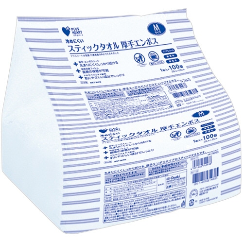 オオサキメディカル プラスハート スティックタオル 厚手エンボス M 個包装 1パック(100本)