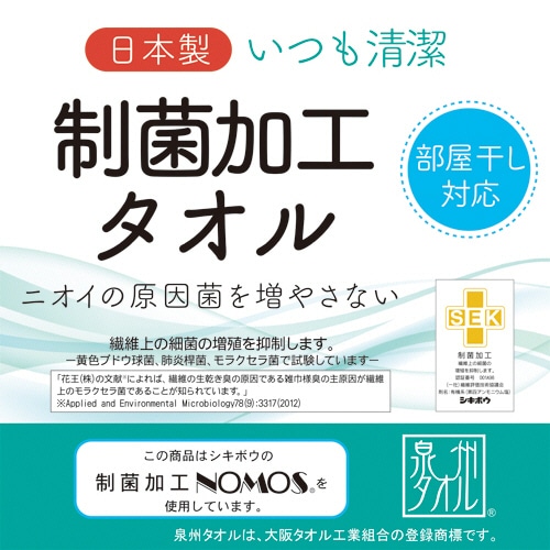 シキボウの制菌加工「ノモス」を施しているフェイスタオル。