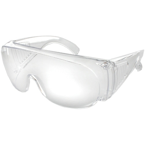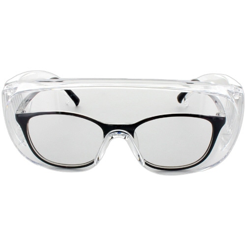 飛沫対策に優れて見えやすいくもり止めコート付の保護グラス。