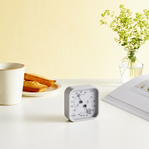 商品仕様 | ●測定項目/温度、湿度 ●設置方法/卓上・壁掛兼用 ●測定温度範囲/-20~40℃ ●測定湿度範囲/10~90% ●寸法/W75×D30×H75mm ●重量/約70g ●色/ウォームグレー ●その他仕様/●最小表示:[温度]2℃、[湿度]5% ●保証期間:1年 |